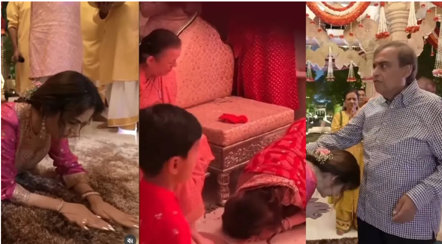 एक वीडियो में वे अपनी मां पूर्णिमा दलाल के सामने घुटने टेककर पैर छूकर आशीर्वाद लेती दिखीं। उन्होंने माँ के पैर थाल में धोकर उनका आशीर्वाद लिया — जो भारतीय परंपरा में अत्यंत सम्मान का प्रतीक माना जाता है।